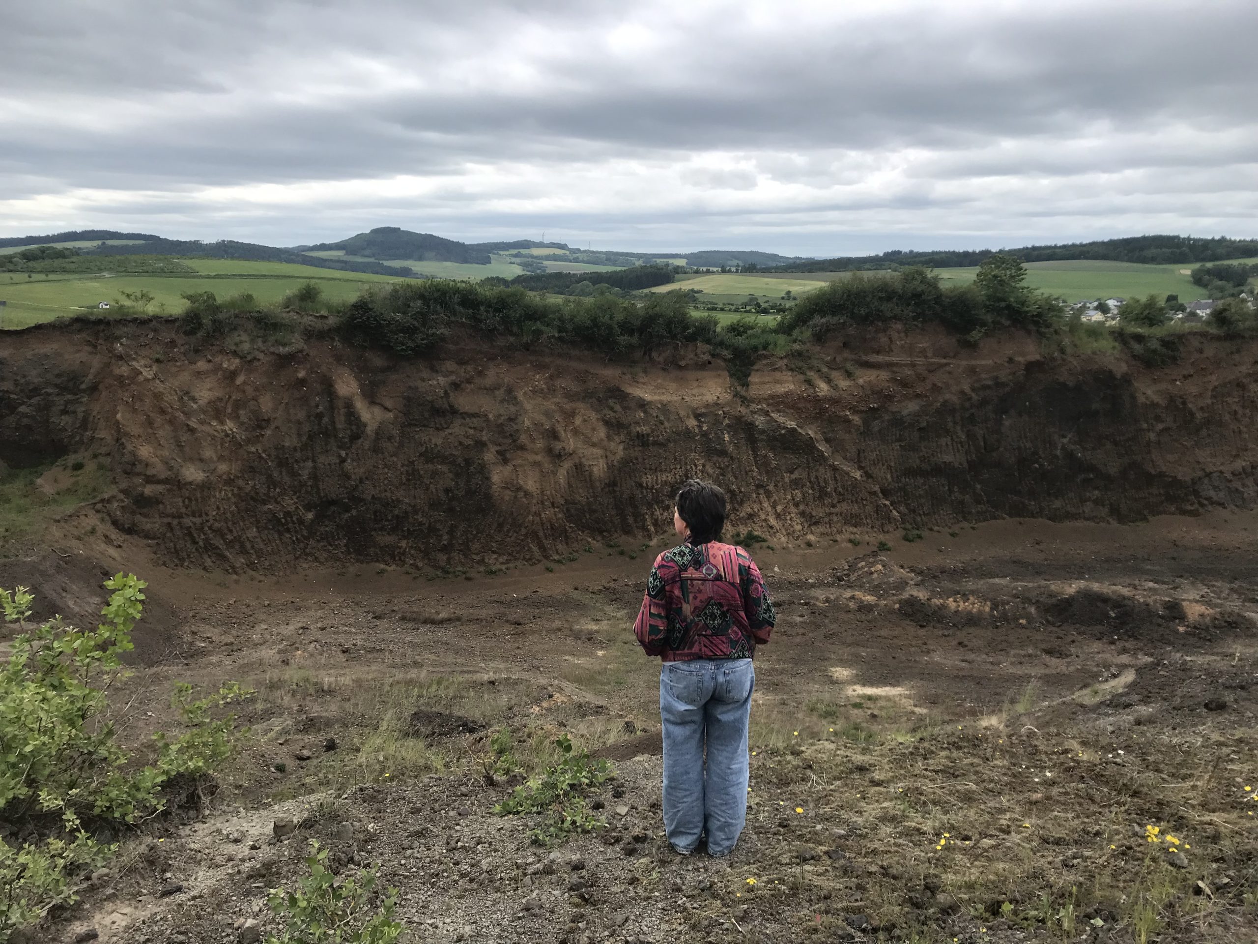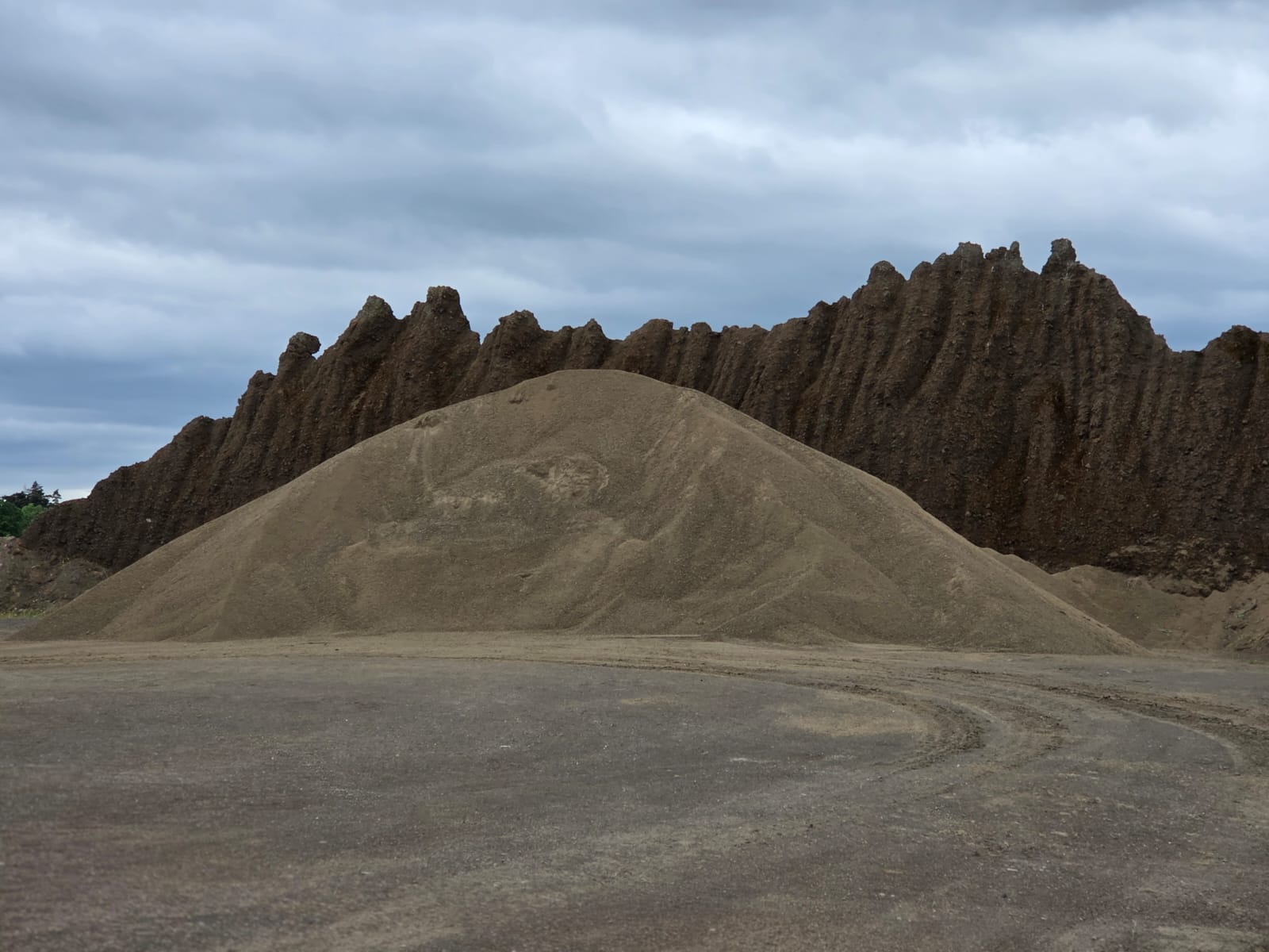 Samstagnachmittag: Wanderung in der Radersberger Lavagrube bei Brück. Da wo früher ein Berg war ist heute eine beeindruckend große Grube mit offener Erde und großen Wänden an denen man unterschiedliche Gesteinsschichten bestaunen kann.